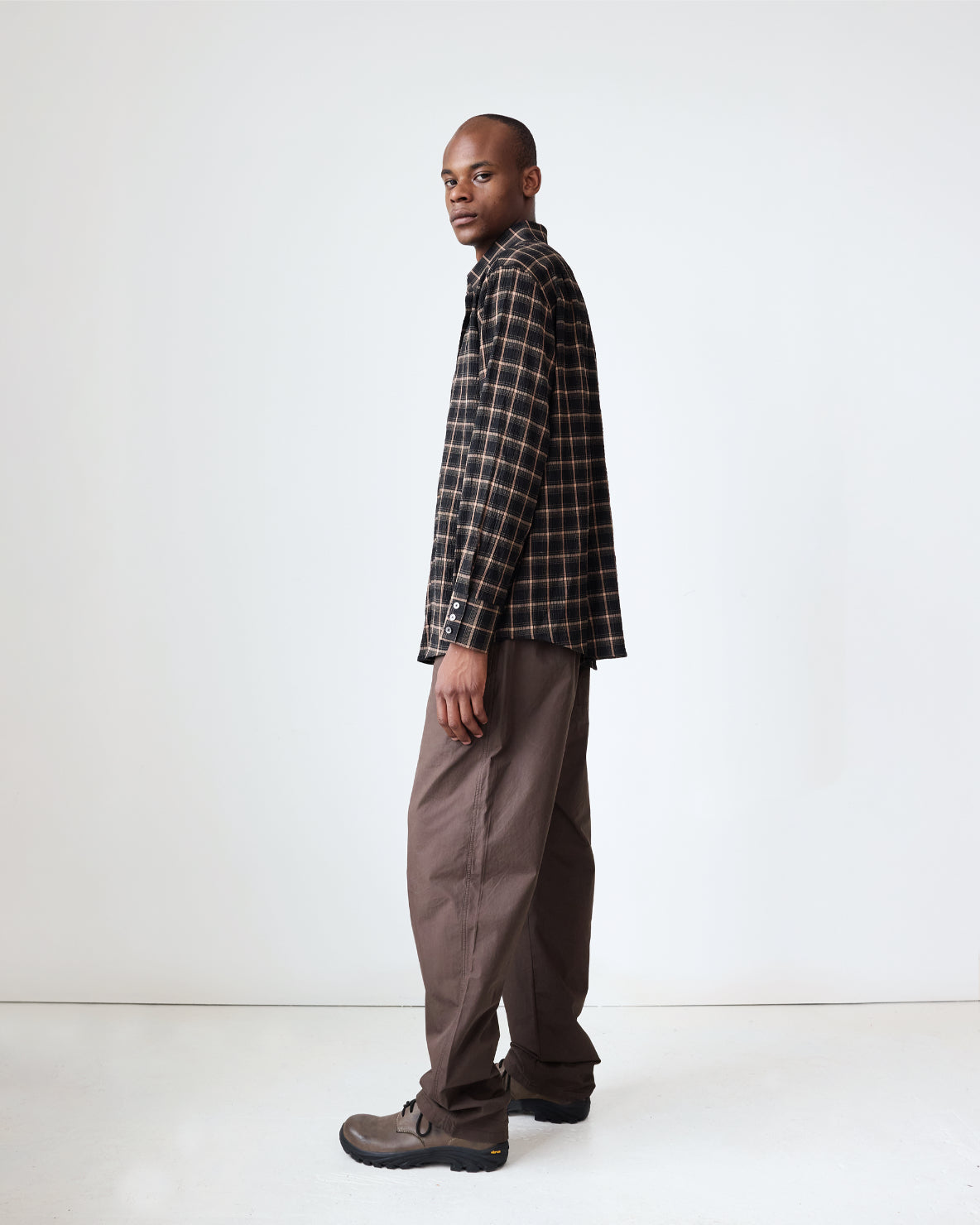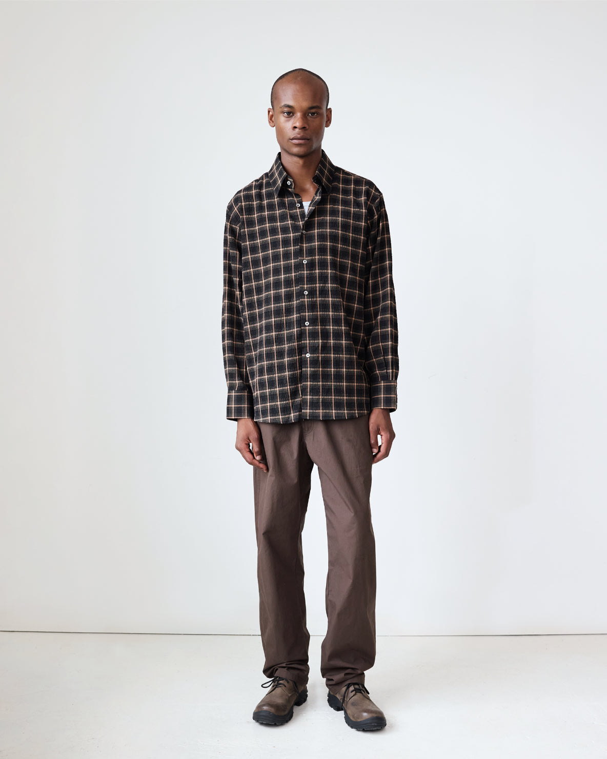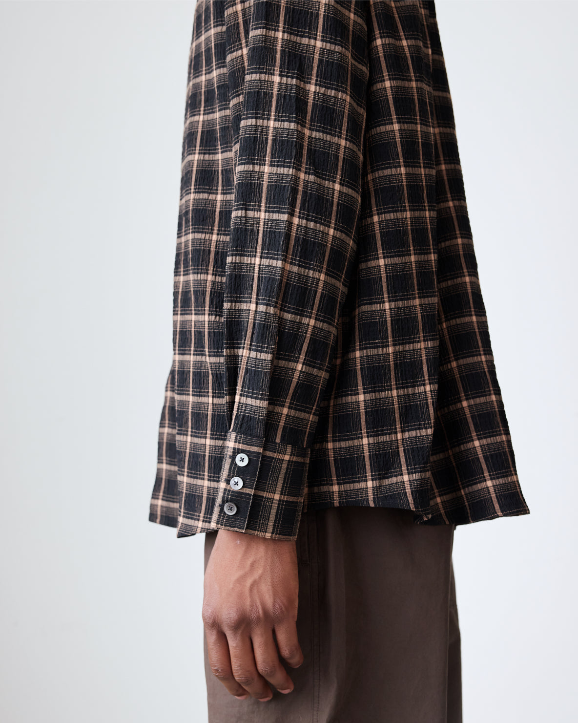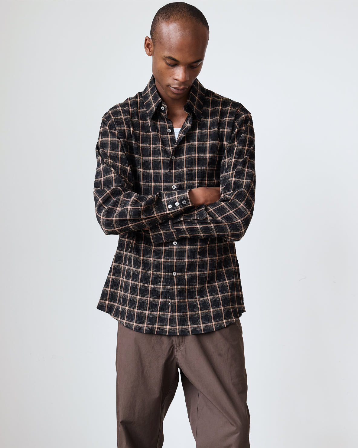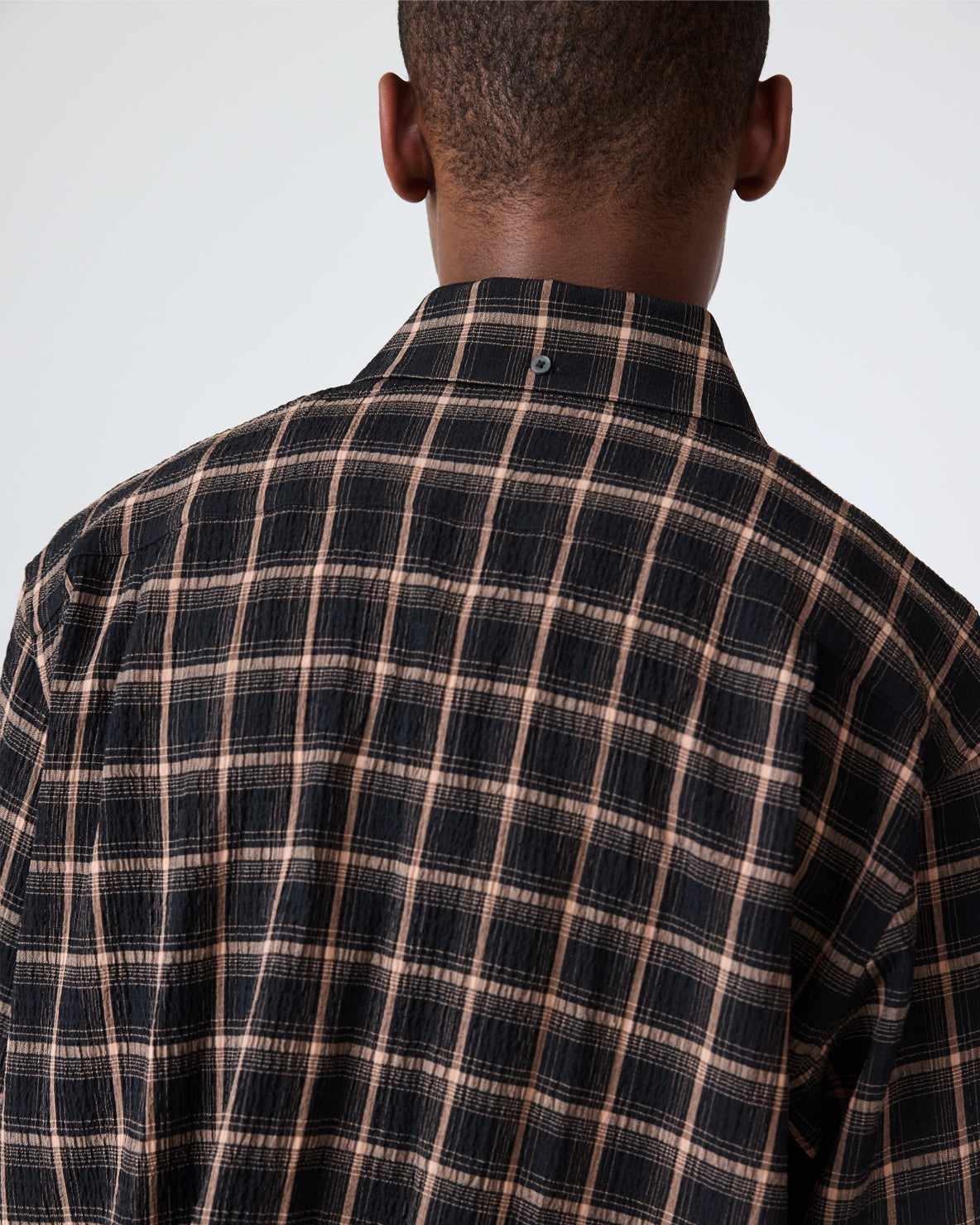Our classic relaxed-fit shirt in a textured plaid blend. The shirt features a french placket, tonal faux-pearl buttons and a left chest pocket. Made to be worn relaxed, size down for a true-to-size fit.
